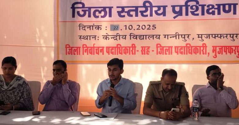 बिहार विधानसभा चुनाव 2025 के शांतिपूर्ण, पारदर्शी एवं मानक के अनुरूप संपादन सुनिश्चित करने को लेकर मुजफ्फरपुर जिला प्रशासन पूर्णतः सक्रिय एवं तत्पर है। इसी क्रम में जिला निर्वाचन पदाधिकारी सह जिलाधिकारी सुब्रत कुमार सेन एवं वरीय पुलिस अधीक्षक सुशील कुमार ने केंद्रीय विद्यालय गन्नीपुर स्थित प्रशिक्षण स्थल, बाजार समिति स्थित बज्रगृह सह मतगणना केंद्र एवं जिला स्कूल डिस्पैच सेंटर का निरीक्षण किया। निरीक्षण के दौरान नगर आयुक्त विक्रम वीरकर, उप-विकास आयुक्त श्रेष्ठ अनुपम, नगर पुलिस अधीक्षक कोटा किरण कुमार, अनुमंडल पदाधिकारी (पूर्वी) तुषार कुमार, अनुमंडल पदाधिकारी (पश्चिमी) श्रेयाश्री, जिला बंदोबस्त पदाधिकारी फिरोज अख्तर, जिला जनसम्पर्क अधिकारी प्रमोद कुमार, सभी