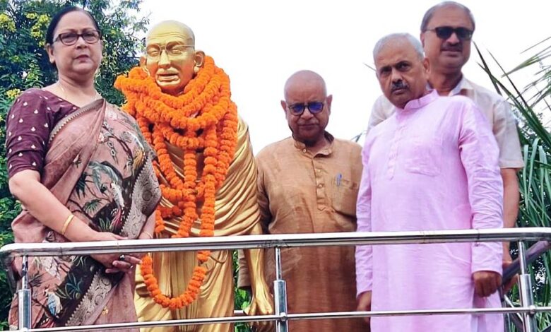 लंगट सिंह महाविद्यालय में राष्ट्रपिता महात्मा गांधी एवं पूर्व प्रधानमंत्री भारत रत्न लाल बहादुर शास्त्री की जयंती के अवसर पर गांधी उद्यान स्थित गांधी जी की प्रतिमा तथा महाविद्यालय परिसर अवस्थित गांधी कूप पर उनकी प्रतिमा पर माल्यार्पण कर श्रद्धा सुमन अर्पित किया गया. इस अवसर पर प्राचार्या प्रो. कनुप्रिया ने कहा की 02 अक्टूबर का दिन हमारे देश के दो महापुरुषो को समर्पित है. इस दिन लोग गांधी जी के विचारों के साथ शास्त्री जी के देशप्रेम और त्याग को भी याद करते हैं। उन्होंने कहा कि हमें इन महापुरुषों के उच्च आदर्शों से प्रेरणा लेकर कार्य करने चाहिए. उन्होंने कहा कि स्वच्छता के विषय में गांधीजी के विचार आज स्वच्छ भारत के रूप में जन-जन को प्रेरणा दे रहे हैं. सरकार के जनकल्याणकारी कार्यक्रमों जैसे, स्वच्छ भारत मिशन, महिलाओं के सशक्तिकरण, गरीबों और दलितों को सशक्त बनाने और गांवों में आवश्यक सुविधाएं प्रदान करने के पीछे राष्ट्रपिता महात्मा गांधी के आदर्श ही प्रेरणा स्रोत रहे है. उन्होंने कहा कि महात्मा गांधी के बताए मार्ग का सच्चे हृदय से अनुसरण ही उनको सच्ची श्रद्धांजलि होगी. कार्यक्रम में महात्मा गांधी के आदर्श पर चलने की सभी को शपथ भी दिलाई गई. इस अवसर पर एमएसकेबी कॉलेज के प्राचार्य डॉ.राकेश कुमार सिंह, प्रो.प्रमोद कुमार, डॉ.नवीन कुमार, डॉ.आनंद कुमार, गुरु प्रसाद कश्यप, दीपक कुमार सहित कई शिक्षक और कर्मचारी मौजूद रहे.