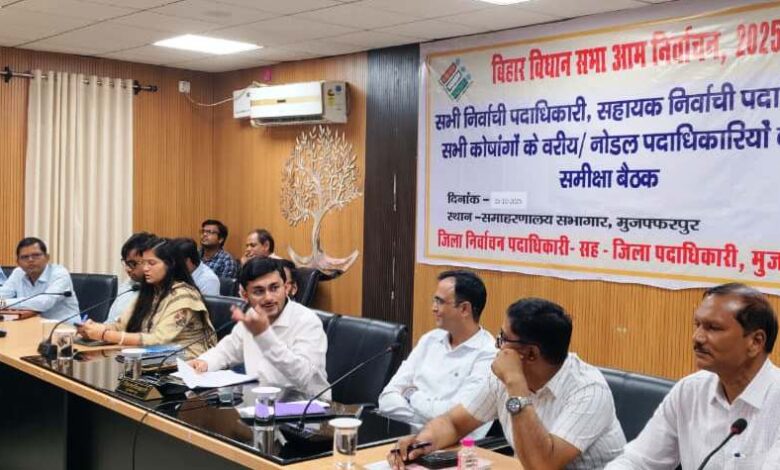 आगामी 6 नवंबर को होने वाले बिहार विधानसभा चुनाव की तैयारियों को लेकर जिला निर्वाचन पदाधिकारी सह जिलाधिकारी सुब्रत कुमार सेन ने मुजफ्फरपुर समाहरणालय सभागार में जिले के सभी कोषांगों के नोडल, वरीय, निर्वाची एवं सहायक निर्वाची पदाधिकारियों के साथ समीक्षा बैठक की। बैठक में नगर आयुक्त विक्रम बीरकर, उप-विकास आयुक्त श्रेष्ठ अनुपम, एसडीओ पूर्वी तुषार कुमार, एसडीओ पश्चिम श्रेयाश्री, जिला बंदोबस्त पदाधिकारी फिरोज अख्तर समेत विभिन्न कोषांगों के अधिकारी, सभी निर्वाची एवं सहायक निर्वाची पदाधिकारी उपस्थित थे। समीक्षा बैठक में जिला निर्वाचन पदाधिकारी सह जिलाधिकारी श्री सेन ने कहा कि “चुनाव को उत्सवी माहौल में स्वतंत्र, निष्पक्ष एवं शांतिपूर्ण रूप से संपन्न कराना जिला प्रशासन की सर्वोच्च प्राथमिकता है।” उन्होंने सभी अधिकारियों से कहा कि वे टीमवर्क और आपसी समन्वय के साथ कार्य करें तथा भारत निर्वाचन आयोग के सभी दिशा-निर्देशों का शत-प्रतिशत पालन सुनिश्चित करें। जिलाधिकारी ने बताया कि मुजफ्फरपुर जिले के 11 विधानसभा क्षेत्रों के सभी मतदान केंद्रों पर लाइव वेबकास्टिंग की जाएगी। उन्होंने कहा कि वेबकास्टिंग का उद्देश्य मतदान प्रक्रिया में पारदर्शिता सुनिश्चित करना और रियल टाइम मॉनिटरिंग के माध्यम से किसी भी प्रकार की अनियमितता को तुरंत रोकना है। इससे नियंत्रण कक्ष से मतदान केंद्रों की स्थिति पर लगातार नजर रखी जा सकेगी और आवश्यकतानुसार त्वरित कार्रवाई की जा सकेगी। उन्होंने यह भी कहा कि इस बार जिले का मतदान प्रतिशत 70 प्रतिशत से अधिक होना चाहिए। इसके लिए मतदाता जागरूकता अभियान (SVEEP कार्यक्रम) को और अधिक प्रभावी बनाने का निर्देश दिया गया। जिलाधिकारी ने कहा कि जिन मतदान केंद्रों पर पिछले चुनाव में वोटर टर्नआउट (VTR) 50 प्रतिशत से कम रहा है, वहां विशेष फोकस किया जाए। उन्होंने निर्देश दिया कि महादलित टोलों में विशेष अभियान चलाकर मतदाताओं को मतदान के लिए प्रेरित किया जाए। अब तक 49,000 दीदियों ने मतदान की शपथ ली है। रंगोली, मेहंदी प्रतियोगिता, प्रभात फेरी, साइकिल एवं मोटरसाइकिल रैली, घर-घर संपर्क और हस्ताक्षर अभियान जैसे कार्यक्रमों के माध्यम से लोगों को जागरूक किया जा रहा है। जिलाधिकारी ने निर्वाची एवं सेक्टर पदाधिकारियों को इन गतिविधियों की नियमित मॉनिटरिंग करने का निर्देश दिया। उन्होंने बीएलओ के माध्यम से शत-प्रतिशत वोटर स्लिप वितरण सुनिश्चित करने को कहा। कार्मिक कोषांग की समीक्षा करते हुए उन्होंने रिसीविंग, डिस्पैच, नामांकन आदि सभी कोषांगों में आवश्यक कर्मियों की समय पर तैनाती का निर्देश दिया ताकि कार्य में कोई बाधा न आए। मतदान दिवस पर पोलिंग पार्टियों की सुगमता के लिए जिल