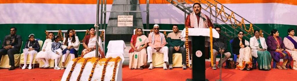 77वें गणतंत्र दिवस पर बाबा साहेब भीमराव अम्बेडकर बिहार विश्वविद्यालय में कुलपति प्रो.दिनेशचन्द्र राय नें ध्वजारोहण किया. इस अवसर पर कुलपति प्रो.राय नें कहा की गणतंत्र दिवस स्वाधीनता सेनानियों के बलिदान का स्मरण कराने के साथ हमें संविधान के प्रति समर्पित रहने की प्रेरणा देता है। हम सब एक सशक्त, समृद्ध और विकसित भारत के निर्माण में अपनी भूमिका निभाएं। अपने संबोधन में उन्होंने भारत के गहरे जड़ें जमाए लोकतंत्र की अटूट शक्ति और लचीलेपन की प्रशंसा करते हुए कहा की इस वर्ष 77वां गणतंत्र दिवस मनाया जा रहा है, जो 26 जनवरी 1950 को संविधान लागू होने की याद में मनाया जाता है। इस अवसर पर कुलानुशासक डॉ.बी.एस राय, अध्यक्ष छात्र कल्याण संकाय डॉ.आलोक प्रताप सिंह सहित बड़ी संख्या में विश्वविद्यालय के अधिकारी, शिक्षक एवं शिक्षकेत्तर कर्मी उपस्थित थें.