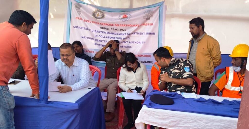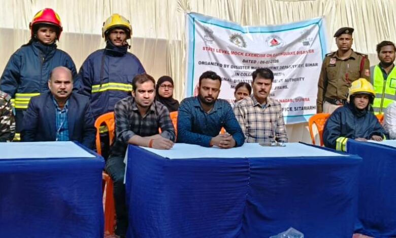 राष्ट्रीय आपदा प्रबंधन प्राधिकरण, नई दिल्ली द्वारा जारी दिशा-निर्देशों एवं पूर्व निर्धारित कार्यक्रम के तहत सीतामढ़ी जिले में भूकंप परिदृश्य आधारित जिला स्तरीय मॉक ड्रिल का सफल आयोजन किया गया। इस व्यापक पूर्वाभ्यास का उद्देश्य संभावित आपदा की स्थिति में त्वरित, समन्वित एवं प्रभावी राहत-बचाव कार्यों की तैयारियों का आकलन करना तथा संबंधित विभागों की तत्परता को परखना रहा। इस क्रम में जिले के कुल छः चिन्हित स्थलों पर एक साथ मॉक ड्रिल का आयोजन किया गया, जिनमें सदर अस्पताल (मॉडल हॉस्पिटल), इंडस्ट्रियल एरिया, जिला योजना भवन (समाहरणालय परिसर), श्री कृष्णा पेट्रोल पंप, लगमा, रिलायंस ट्रेंड्स, एस.आई.टी. इंजीनियरिंग कॉलेज, गोसाईपुर, सीतामढ़ी शामिल हैं। मॉक ड्रिल के दौरान भूकंप के पश्चात आगजनी एवं भवन क्षति की आपात स्थिति को दर्शाते हुए घायलों के सुरक्षित रेस्क्यू, प्राथमिक उपचार, अग्निशमन, मलबा हटाने, सर्च एंड रेस्क्यू ऑपरेशन एवं सुरक्षित निकासी (इवैक्यूएशन) की संपूर्ण प्रक्रिया का जीवंत अभ्यास किया गया। पूर्वाभ्यास के दौरान अपर समाहर्ता आपदा प्रबंधन की उपस्थिति में, उनके साथ संबंधित प्रतिनियुक्ति पदाधिकारी, कर्मी एवं पुलिस पदाधिकारी भी मौजूद रहे। एनडीआरएफ, एसडीआरएफ, आपदा मित्र, अग्निशमन दल, गृहरक्षक, स्वास्थ्य विभाग, पुलिस प्रशासन, नगर निगम, विद्युत विभाग एवं अन्य संबंधित विभागों द्वारा आपसी समन्वय के साथ तत्परता एवं दक्षता का परिचय दिया गया। घायलों को त्वरित रूप से प्राथमिक उपचार उपलब्ध कराते हुए एम्बुलेंस के माध्यम से सुरक्षित अस्पताल पहुंचाने की प्रक्रिया का भी अभ्यास किया गया। जिला जनसम्पर्क अधिकारी कमल सिंह नें बताया की मॉक ड्रिल के सफल आयोजन से जिले में आपदा प्रबंधन को लेकर प्रशासन की तैयारियों का प्रभावी प्रदर्शन हुआ एवं आम नागरिकों में भी आपदा के प्रति जागरूकता का संचार हुआ।
