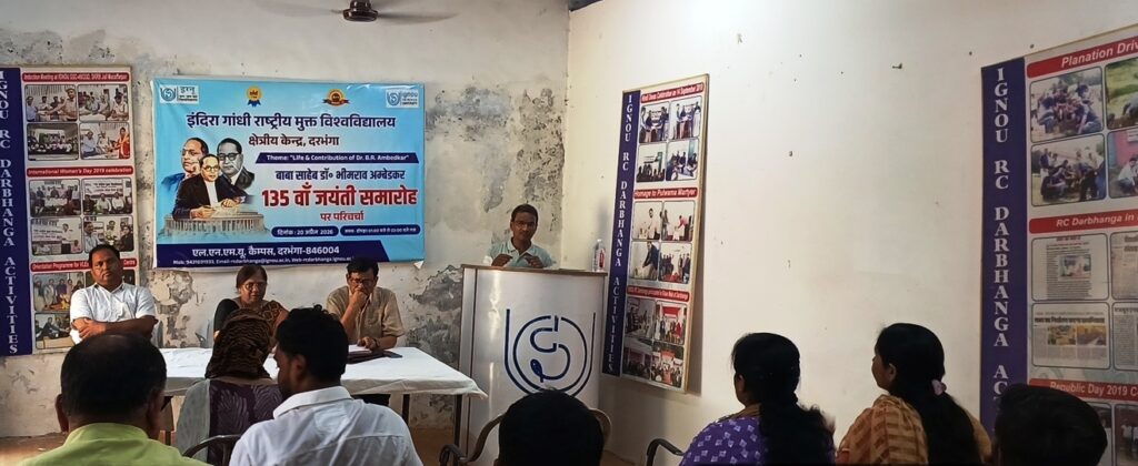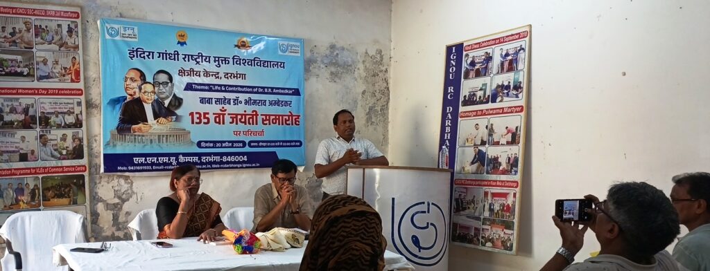 डॉ.भीमराव अंबेडकर की 135वीं जयंती के अवसर पर, इग्नू क्षेत्रीय केंद्र, दरभंगा ने “डॉ. भीमराव अंबेडकर का जीवन और योगदान” विषय पर परिचर्चा का आयोजन किया. इग्नू (IGNOU) क्षेत्रीय केंद्र, दरभंगा द्वारा आयोजित यह चर्चा बाबा साहेब के आदर्शों को याद करने का एक सार्थक प्रयास रही। इस कार्यक्रम के दौरान उनके जीवन के विभिन्न पहलुओं पर विस्तार से प्रकाश डाला गया। इस अवसर पर इग्नू क्षेत्रीय केंद्र, दरभंगा के निदेशक डॉ.संतन राम ने मुख्य वक्ता के रूप में अपने विचार व्यक्त किए। उन्होंने मानवता के लिए डॉ. अंबेडकर के विचारों की प्रासंगिकता पर जोर दिया। उन्होंने कहा कि डॉ.अंबेडकर समाज के एकीकरण के लिए स्वतंत्रता, समानता, भाईचारा और न्याय के सामंजस्य को अनिवार्य मानते थे। डॉ.संतन ने रेखांकित किया कि बाबा साहेब जाति विभेद को समाज और राष्ट्र की प्रगति में सबसे बड़ा बाधक मानते थे। उनके अनुसार, विकसित राष्ट्र का सपना तभी पूरा हो सकता है जब समाज से जाति, वर्ग, लिंग और भाषा आधारित भेदभाव पूरी तरह समाप्त हो जाए। इस अवसर पर मुख्य अतिथि सह एलएन मिथिला विश्वविद्यालय में राजनीति विज्ञान विभाग के विभागाध्यक्ष प्रो.मुनेश्वर यादव ने भारत को रूपांतरित करने वाली उस मौन क्रांति की ओर इशारा किया, जिसकी शुरुआत डॉ.अम्बेडकर नें की थी। डॉ.यादव नें बाबा साहेब के प्रसिद्ध मंत्र “शिक्षित बनो, संगठित रहो और संघर्ष करो” को वर्तमान संदर्भ में दोहराया गया। उन्होंने यह बात प्रमुखता से रखी कि अंधविश्वास को त्यागकर और तार्किक सोच अपनाकर ही राष्ट्र का सर्वांगीण विकास संभव है। कार्यक्रम का कुशल संचालन एवं धन्यवाद ज्ञापन इग्नू क्षेत्रीय केंद्र, दरभंगा के निजी सचिव राजीव रंजन द्वारा किया गया।